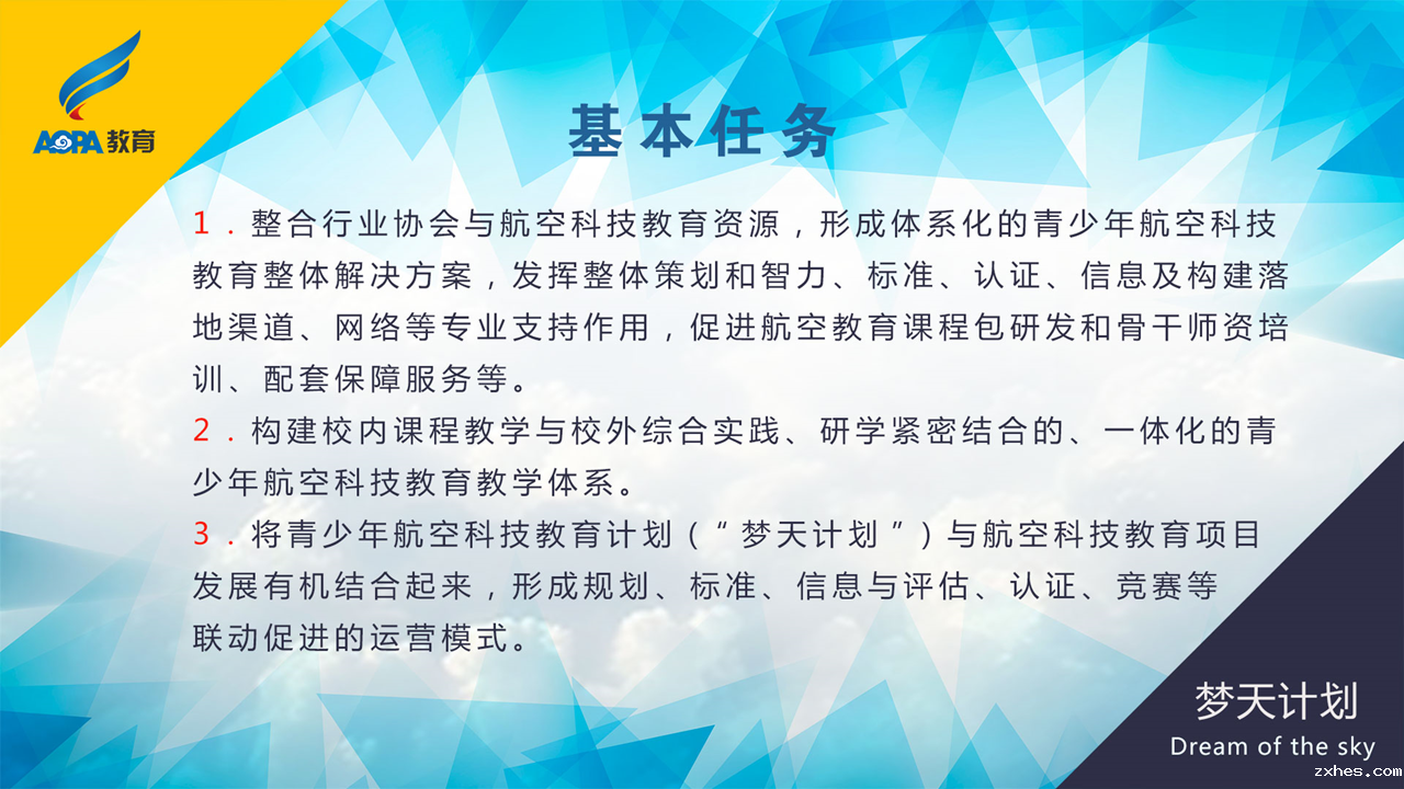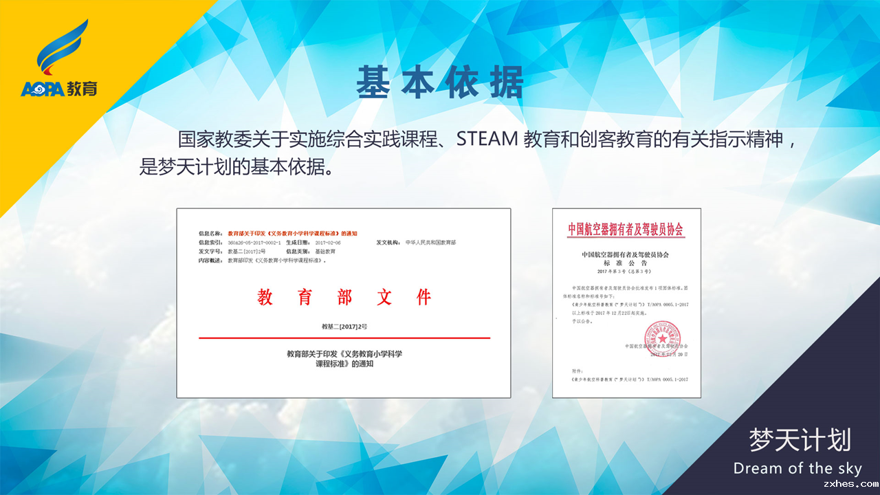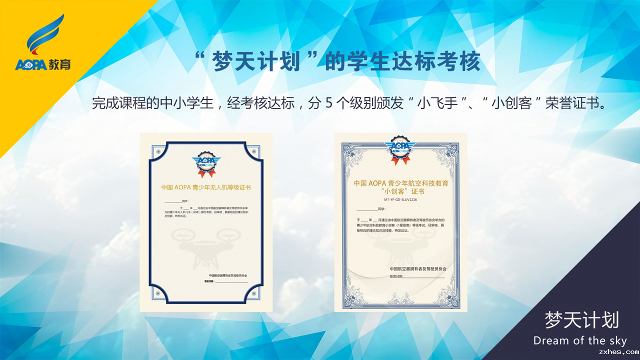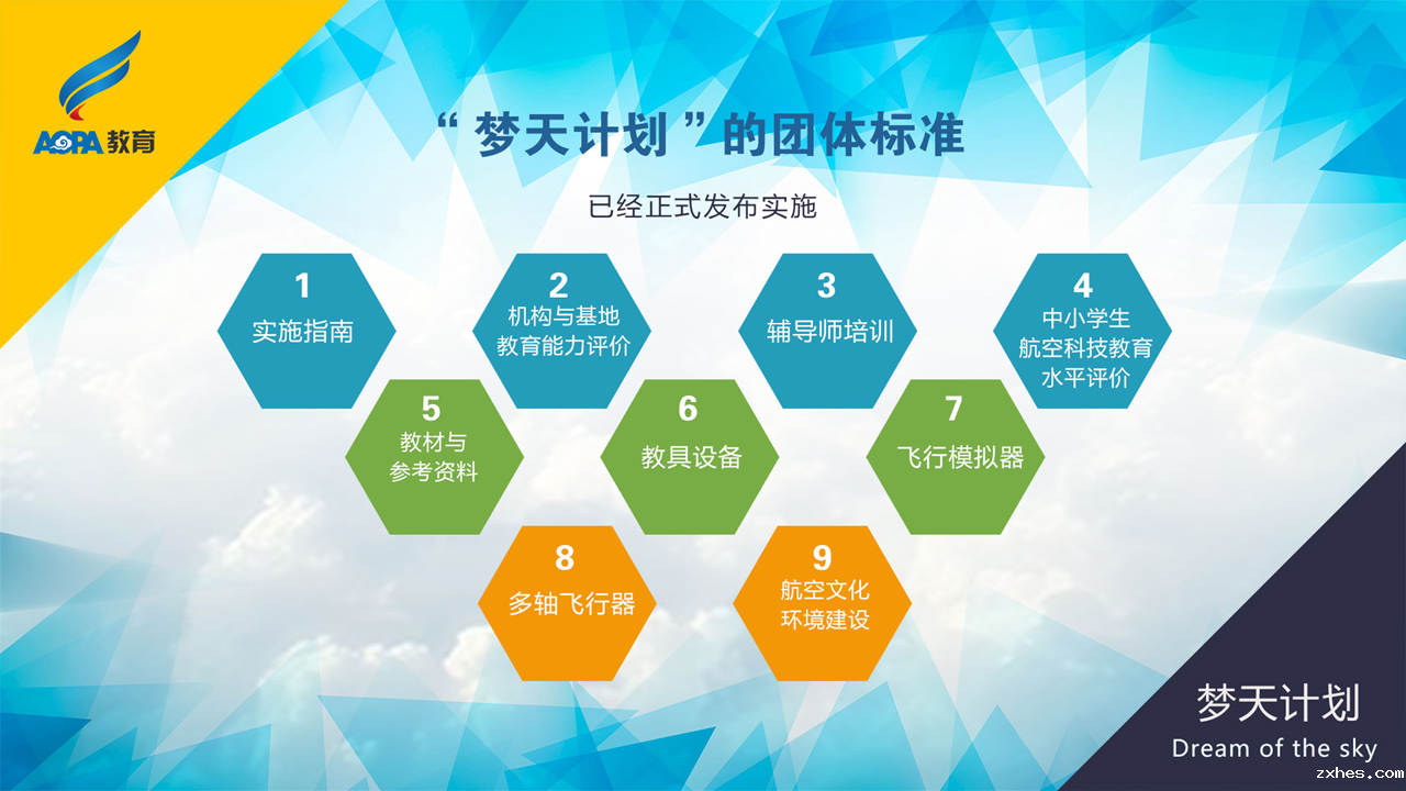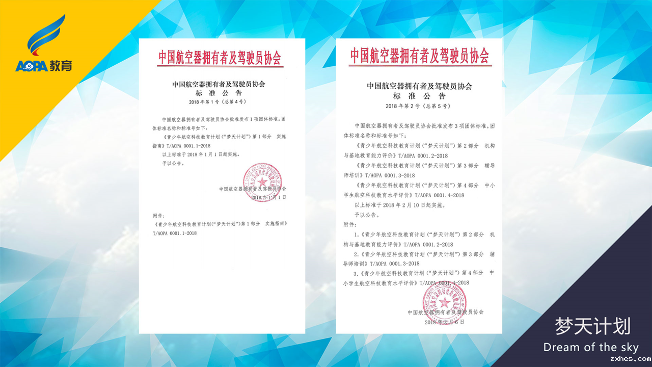 为改变这种现状,提升青少年航空科技教育的质量效益、组织管理和保障水平,保证安全、促进发展,树立行业的良好形象,优米网络有限公司发起了青少年航空科技教育计划(“梦天计划”),并制定发布了一整套团体标准,力求以标准及其认证为抓手,规范主要内容、基本程序和组织方法,建立更加科学、高效的科技教育体系。“梦天计划”系列团体标准包括实施指南、机构与基地教育能力评价、辅导师培训、学生教育水平评价、教材、教具设备、飞行模拟器、多轴飞行器8项。
