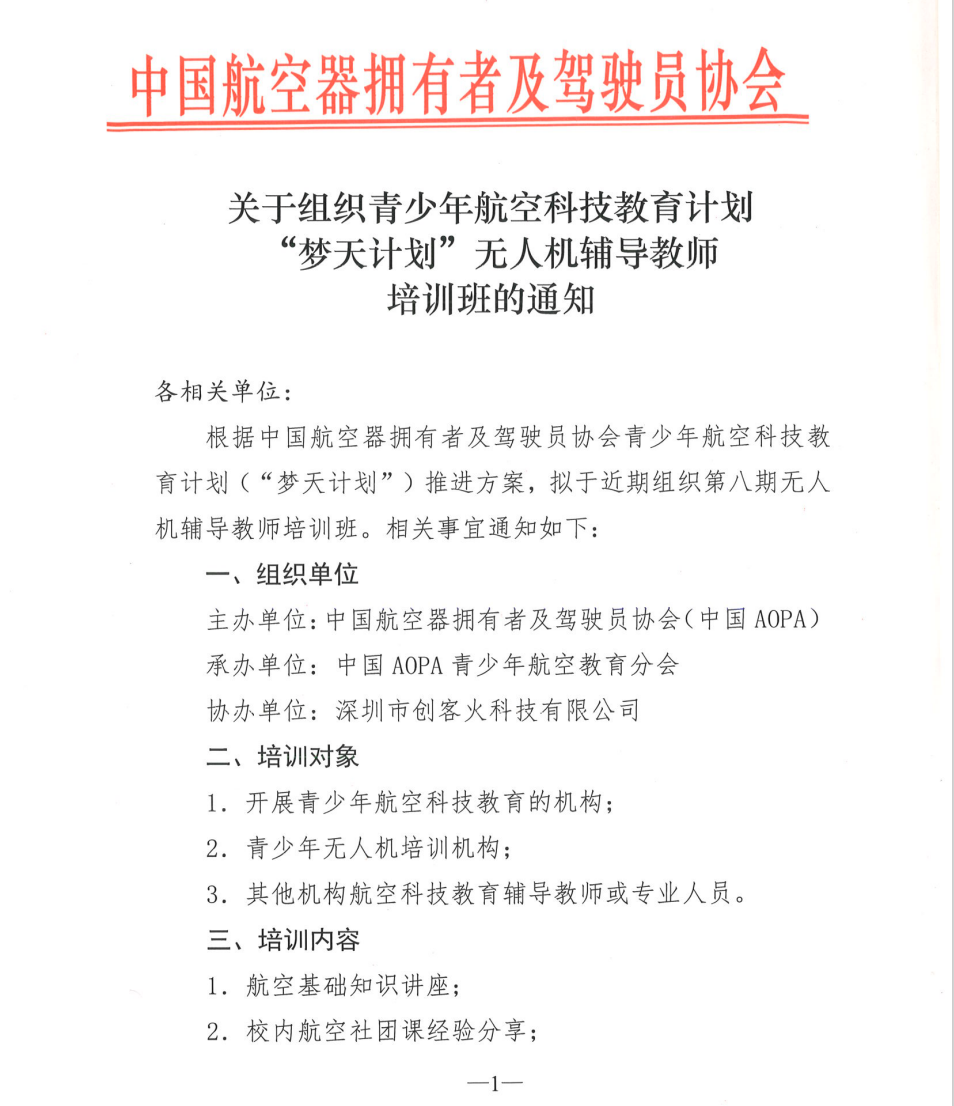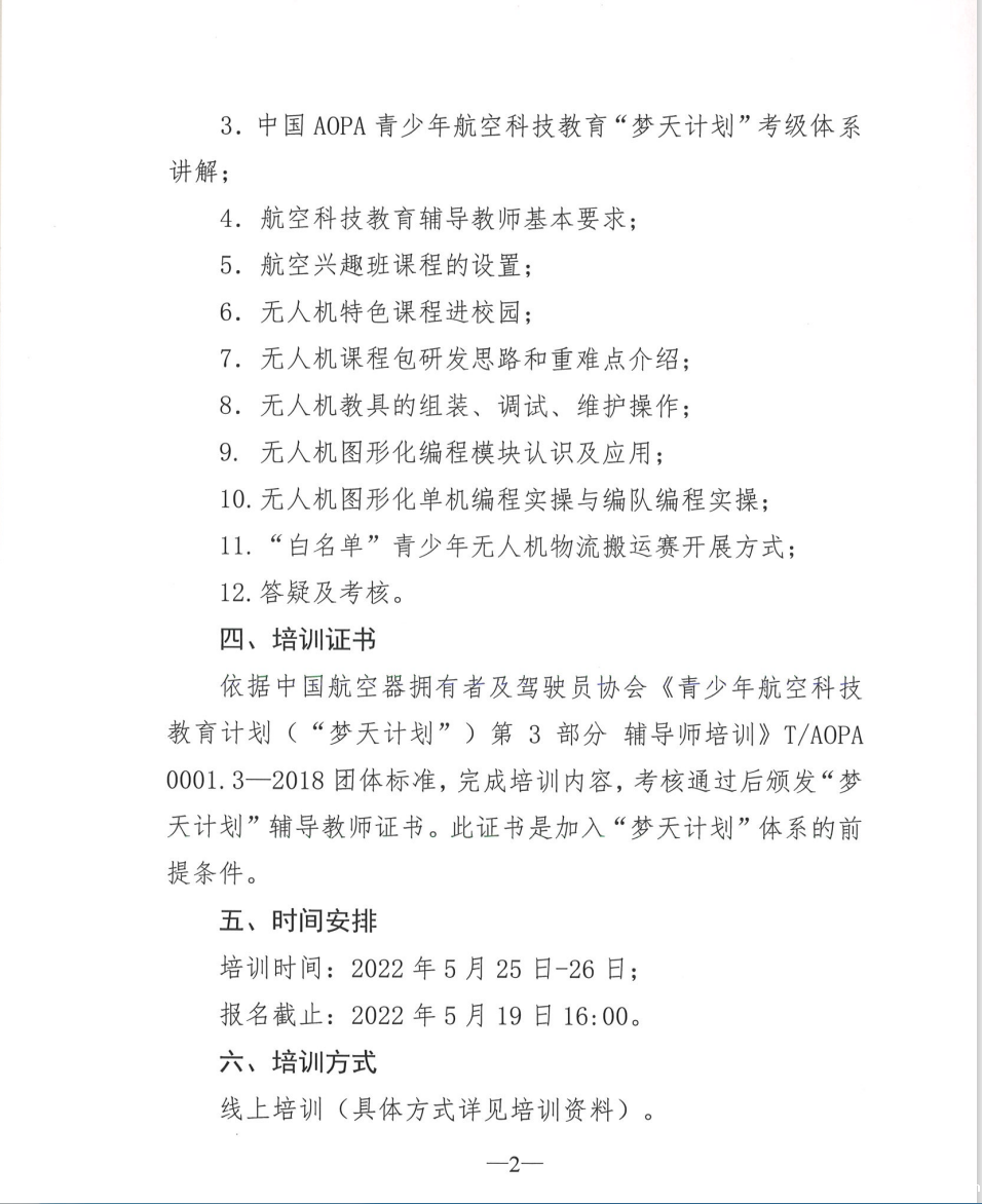 5月25日第八期青少年航空科技教育“梦天计划”无人机辅导师培训班报名中