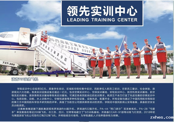 领先实训中心。学院实训中心总投资3亿元,具备学生培训、区域航空院校集中实训、民航单位入职员工初训、在职员工复训、社会体验、旅游观光六大功能。各类实训设备总值达一亿元,包含空乘实训中心,空保实训基地、安检实训中心、航空机务实训基地、航空物流实训基地、高铁乘务实训基地等,可满足各类民航岗位的实训需求。泛美集团旗下现有罗宾逊R44直升机、罗宾逊R22直升机、PA-44“西门诺尔”双发教练机、PA-28“弓箭手”单发教练机等近200架飞机,为学院通航人才培养提供有力保障。